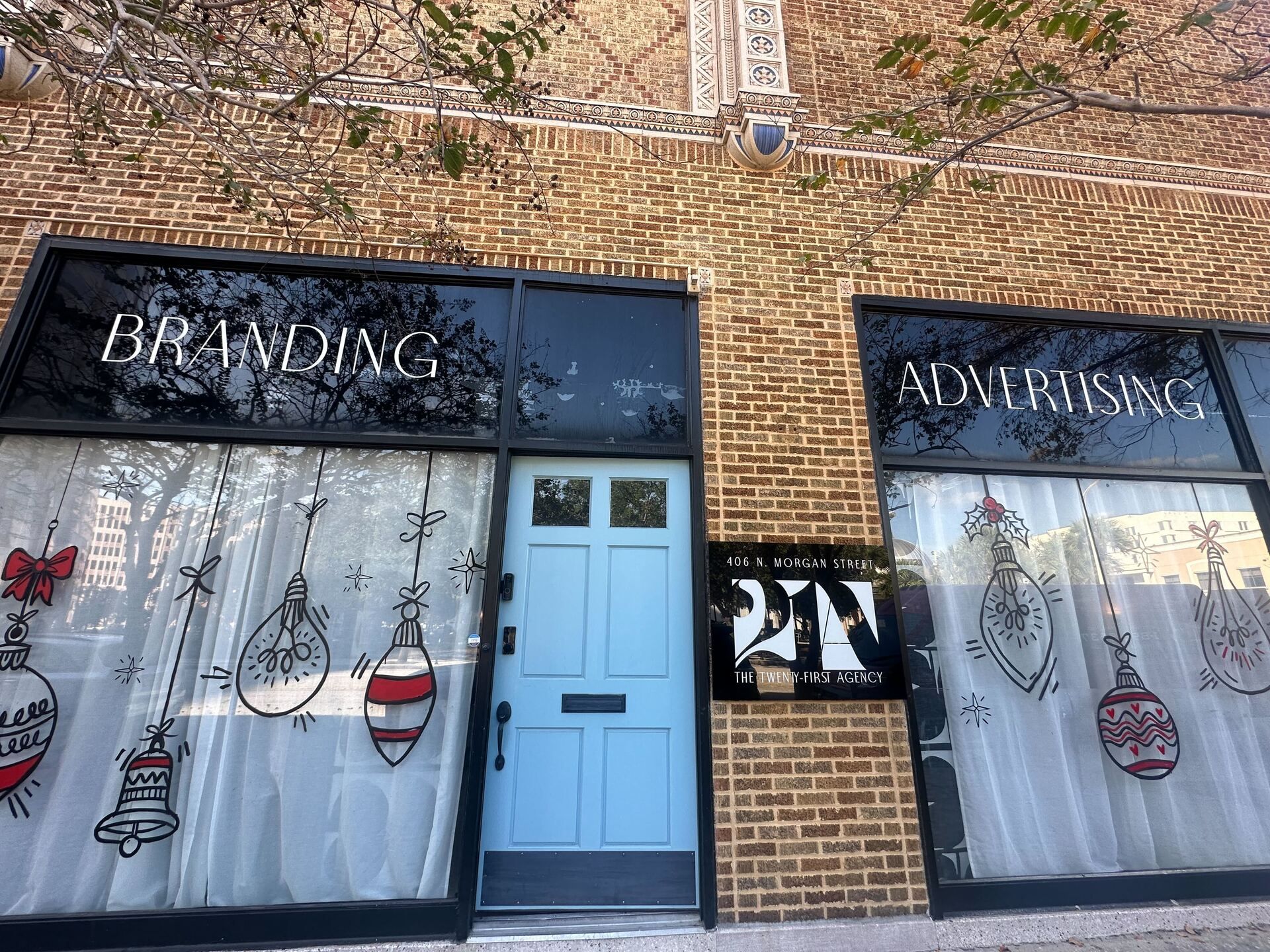 The holidays pulled up early at 21A, so we dressed the place accordingly. Tampa’s very own Bianca Burrows, ItsBBArt made an appearance by blessing us with the best, one-of-a-kind window mural. The office got a full festive glow-up, and yes, we’re going all out. Mariah Carey has made her presence known.