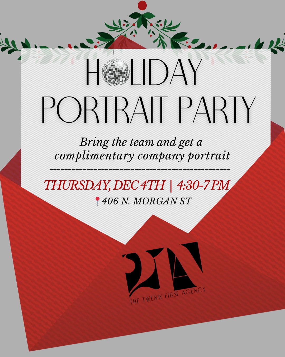 GRAB YOUR TIME SLOT - HOLIDAY PORTRAIT PARTY AT THE 21A!